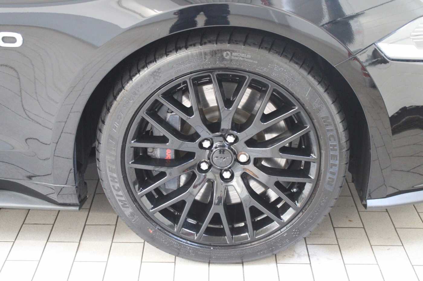 - GT-Leichtmetallräder, 10-Speichen-Y-Design, schwarz-glänzend vorn 9J x 19 mit 255/40 R19 Reifen, hinten 9,5J x 19 mit 275/40 R19 Reifen