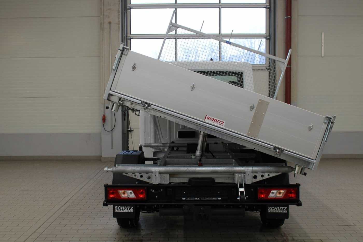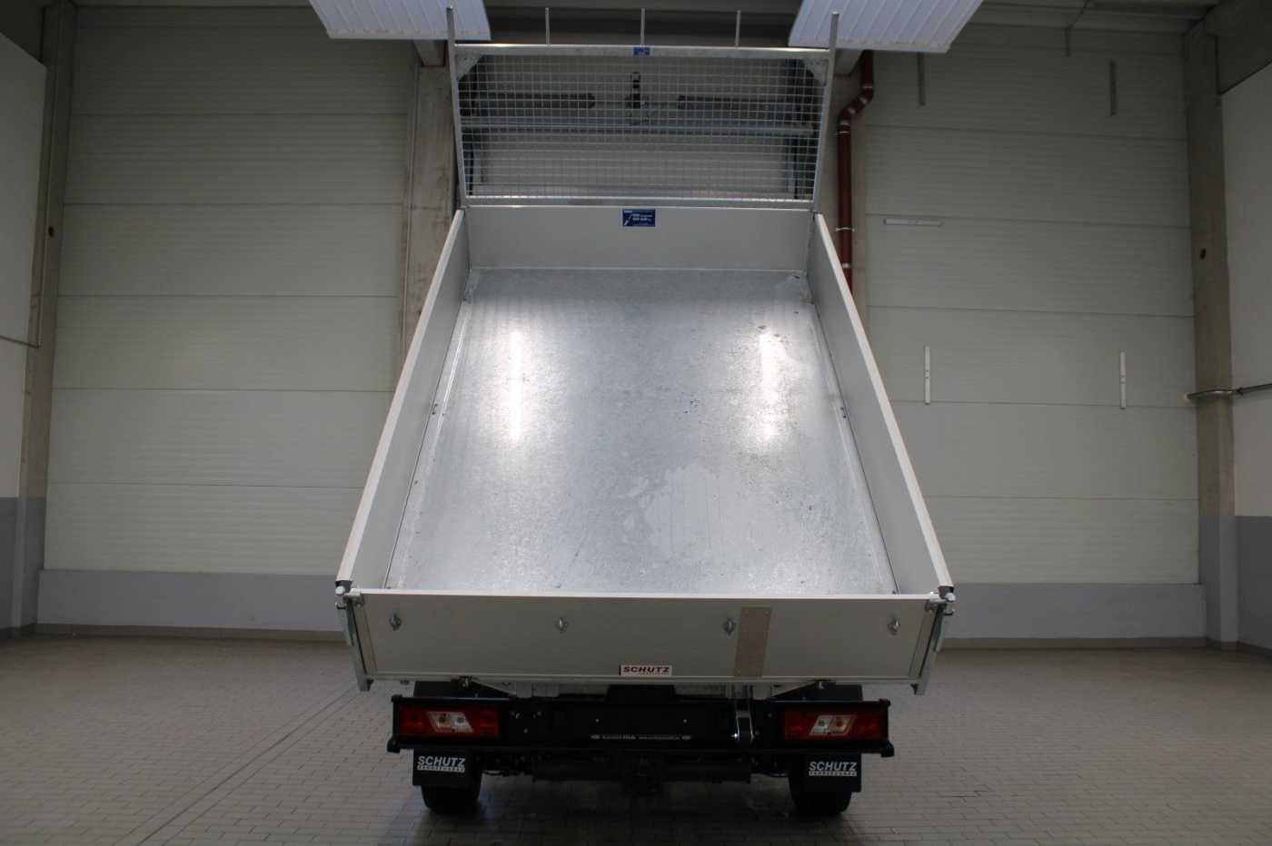 - 3-Seiten-Kipper: Aufbaugewicht: ca. 565 kg / Ladehöhekante: ca. 1.060 mm / Innenmaße Mulde (L/B/H): 3.150 mm x 2.030 mm x 400 mm / Alu-Bordwänden (400 mm) und Stahlboden / im Boden versenkbare Zurrösen nach DIN 75410